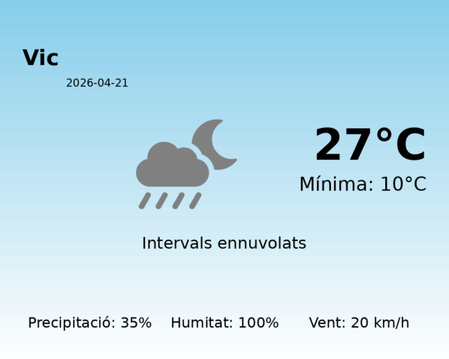 Predicció del Temps a Vic per al 21 d’abril de 2026