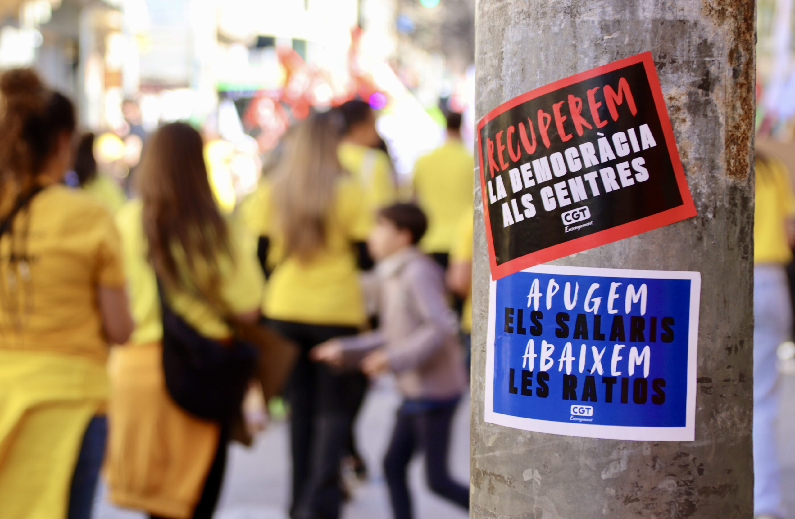 ACN Manresa – Manifestació unitària del personal docent de la Catalunya Central, que ha aplegat 5.000 persones a Manresa segons els sindicats convocants i més d’un miler segons la Policia Local. Sota el lema ‘Ja n’hi ha prou, millores laborals ja! Més salaris, més recursos i menys ràtios i burocràcia’, la protesta ha començat amb talls a la C-55 i una marxa lenta de vehicles des d’Osona. Els sindicats USTEC, CGT, Intersindical i Professors de Secundària han destacat el que consideren una “gran mobilització”. Volen millores i diuen un “no rotund” al “pacte de la vergonya” entre CCOO i UGT i Educació. Durant la protesta, han omplerts de papers grocs la seu del PSC amb crits de “botiflers” i han llançat ous a la seu de CCOO amb crits de “rates venudes”.