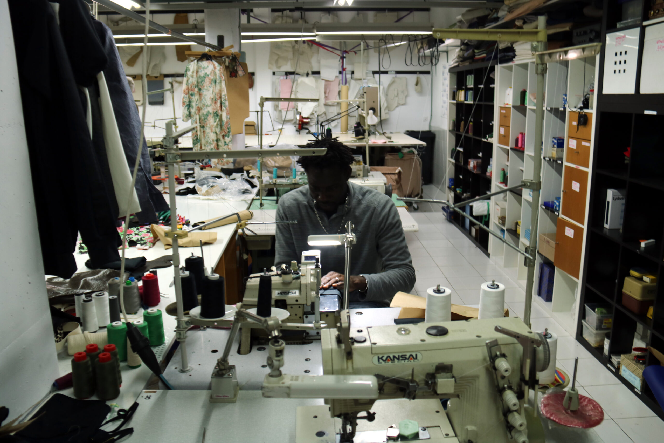 Un altre dels socis del projecte és el Modou Gueye, del Senegal. Forma part del taller “des del principi”. El projecte, diu, li permet desenvolupar la seva creativitat. “Cada soci aporta la seva idea i la seva línia pròpia. Jo treballo sobretot amb dessuadores, samarretes i bosses combinades amb tela africana”, assenyala. Per a Gueye, disposar d’un espai amb maquinària i suport col·lectiu ha estat clau: “Sense la cooperativa hauria estat molt difícil tenir un lloc així per crear i produir”.