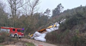 Un camió surt de la via i bolca a Sant Bartomeu...